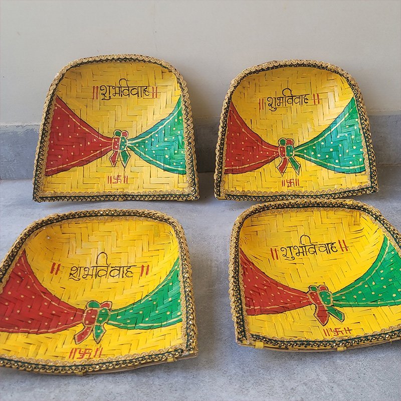 Celebrate the sacred bond of marriage with our exquisitely Hand-Painted Lagnagath Soop. This unique and charming decorative piece beautifully captures the essence of the “Lagnagath” (the holy wedding knot) and the joyous blessing of “Shubh Vivah” (Auspicious Wedding) through delicate artistry. Crafted on a traditional small-sized soop (winnowing basket), it’s a perfect, heartfelt addition to your Maharashtrian wedding Rukhwat, ceremony decor, or as a thoughtful, artistic gift symbolizing eternal love and prosperity.
