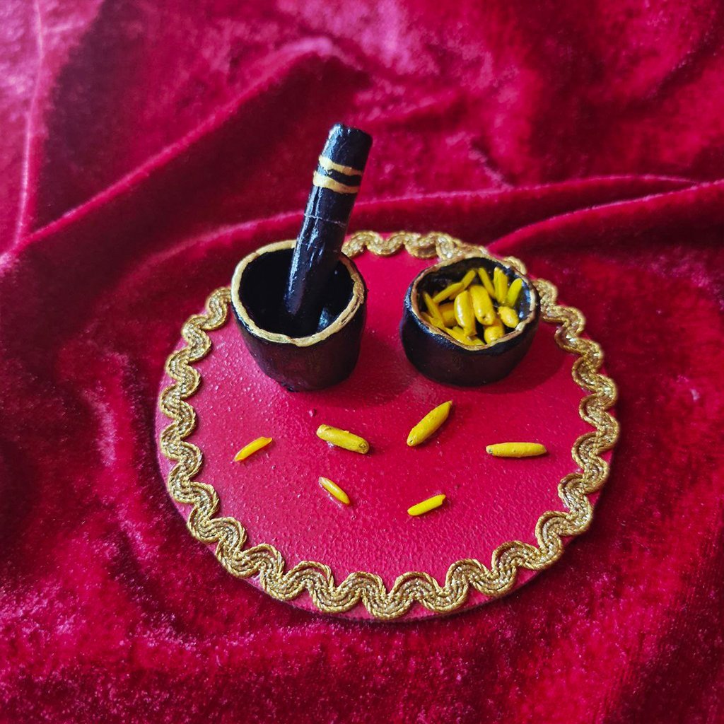Elevate your Maharashtrian wedding celebrations with our beautifully handcrafted Bhatukali set. This intricately designed miniature kitchen or household item set is a cherished part of the Rukhwat ceremony. It traditionally showcases the bride’s abilities, her readiness for new responsibilities, and her potential as a skilled homemaker to the groom’s family, adding a deeply significant and cultural touch to your special day.